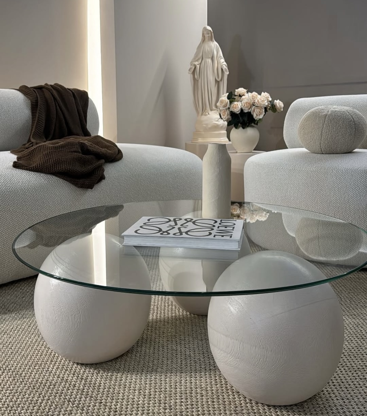 میزجلومبلی سه گوی صفحه شیشه گرد